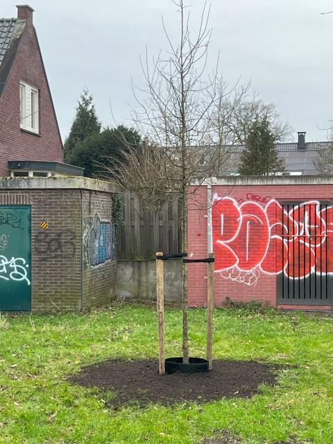 2024 | Boom niet in het midden van het vak geplaatst in verband met riool aansluiting huis. |